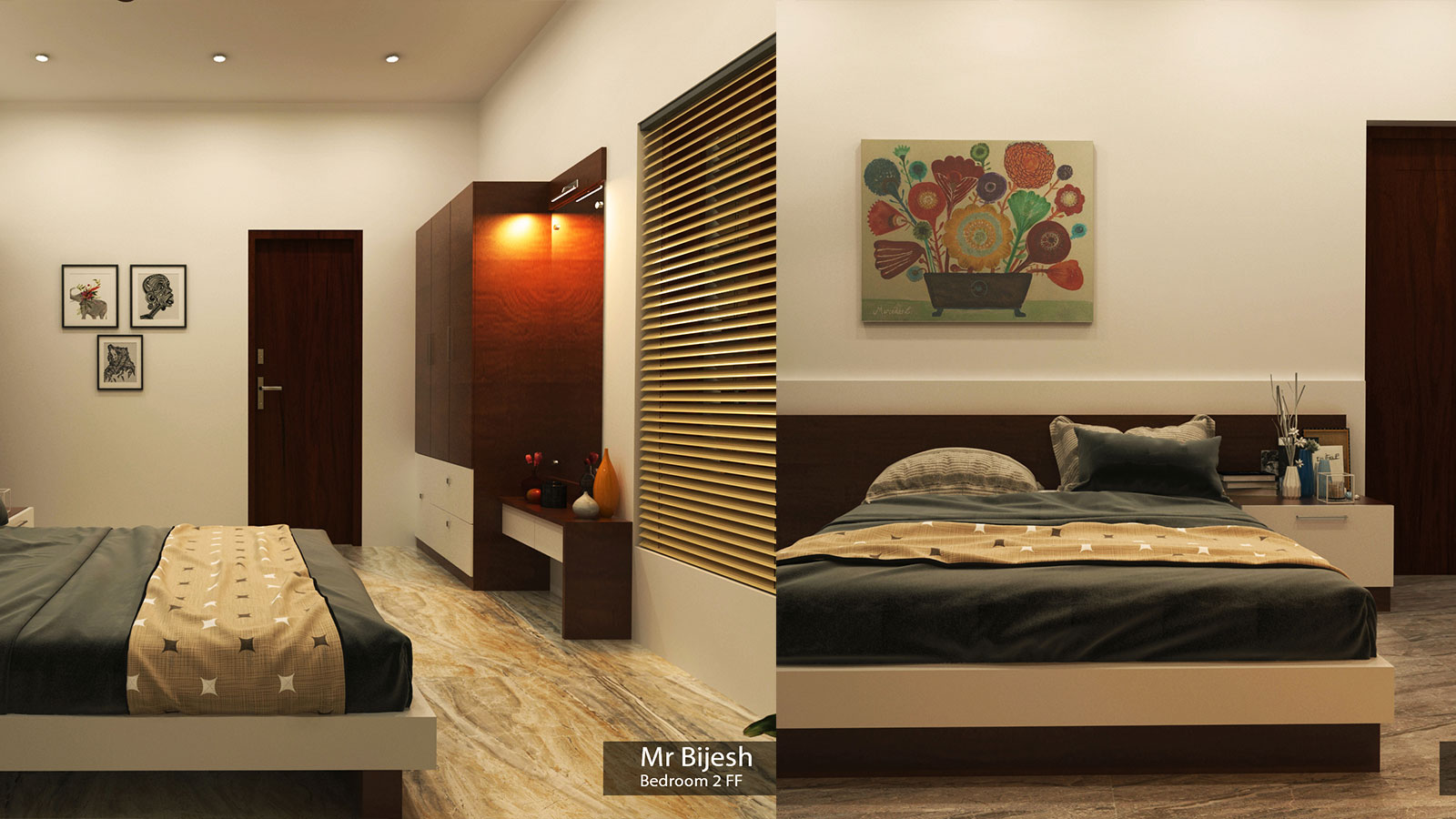 Client was specific about his new bedroom and he wanted to design a low floor bed option and a normal floor bedroom with specific element...